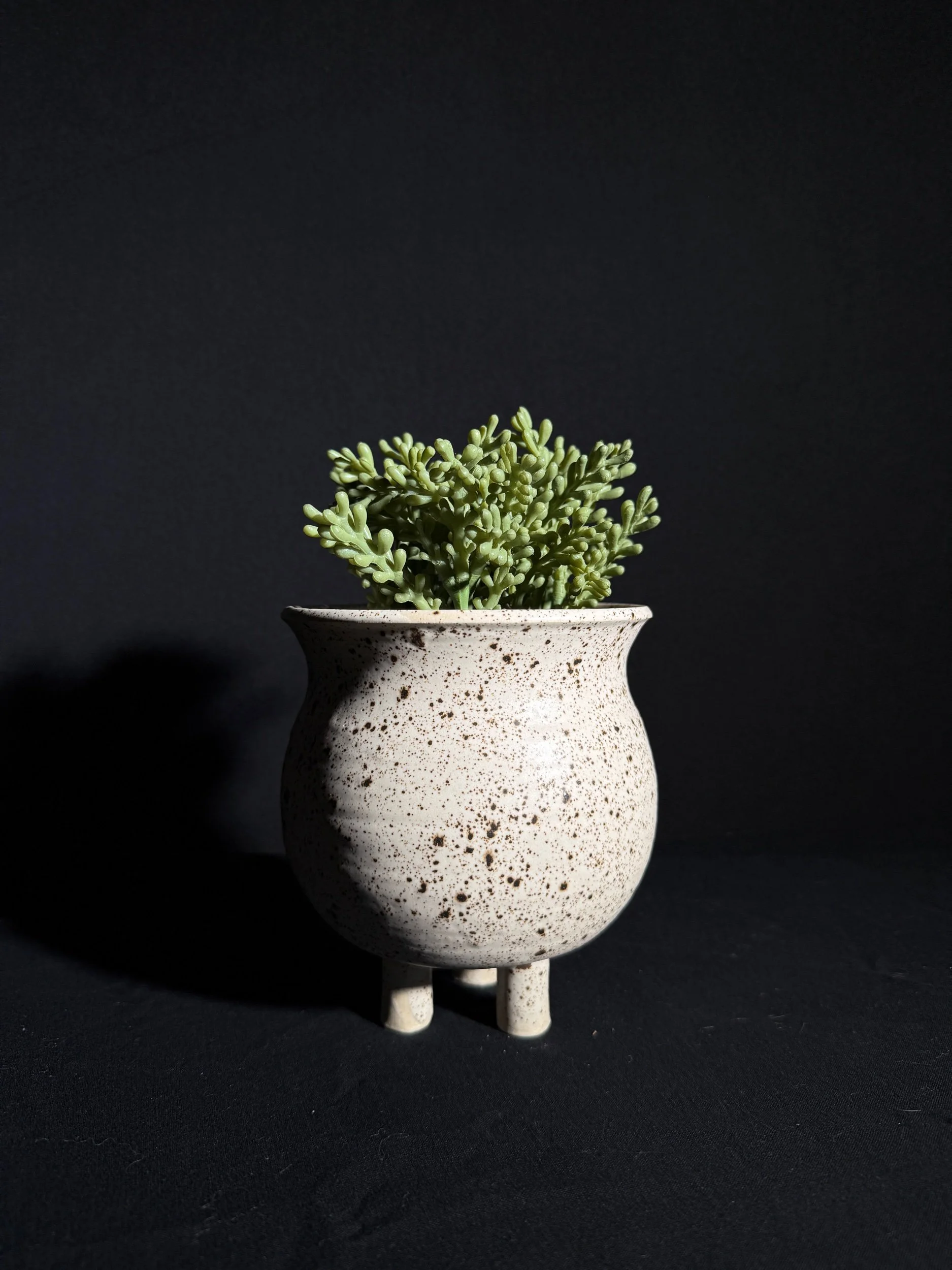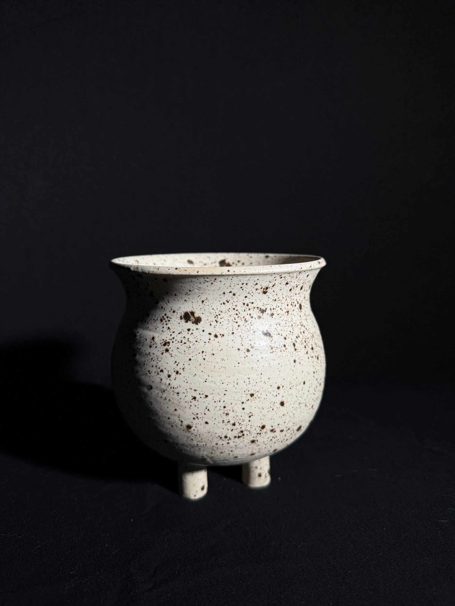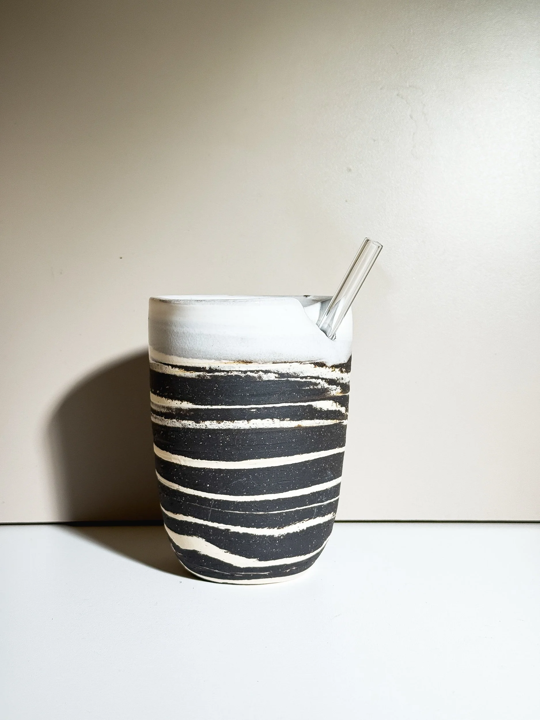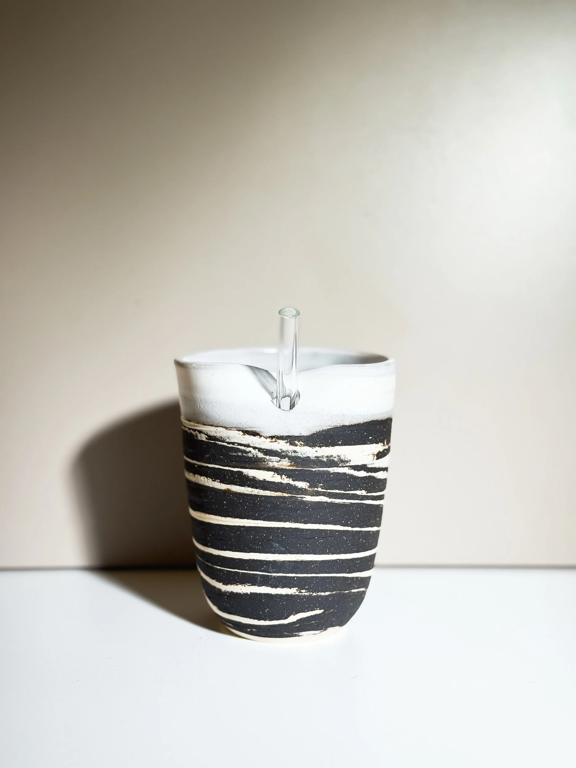 Introducing the Ash & Bone sip cup — a haunting twist on the potters’ signature swirl design. Handcrafted from matte black and speckled white clay, each cup features a mesmerizing marbled pattern that feels both modern and otherworldly. Designed with a small opening in the wall for a glass straw, this limited-edition piece brings eerie elegance to your daily rituals. Inspired by the potters’ beloved brown and white swirl series, Ash & Bone is a Halloween special release meant for slow sips and quiet moments. Perfect for iced coffee, matcha, or your favorite potion of choice — before it disappears into the dark.